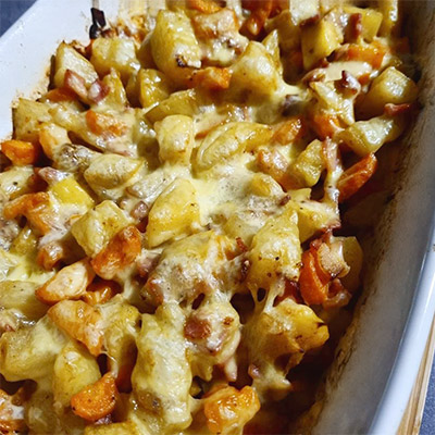 Ingredients: 3 chicken breasts (or thighs) 3 4 potatoes, thinly sliced 1 onion, sliced 1 cup cherry tomatoes (or sliced tomatoes) ½ cup mushrooms (optional) 1 1½ cups shredded cheese 2 3 tbsp olive oil 1 tsp garlic powder 1 tsp paprika ½ tsp black pepper Salt to taste ½ tsp dried oregano ½ cup chicken broth or water Method: 1. Preheat oven to 190°C (375°F). 2. In a baking tray, add potatoes, onion, tomatoes,...
