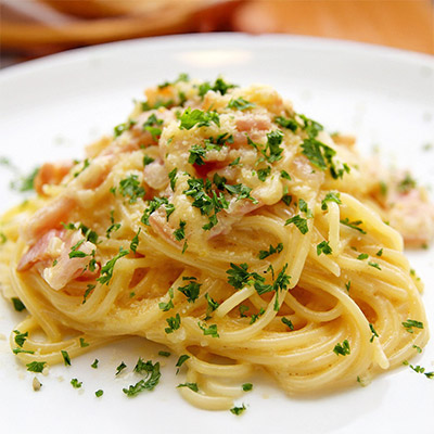 This dish started out as a "bacon and eggs" pasta for US soldiers..and later evolved into a creamy dish..I've taken it back to its original..and then dressed it up! You will need...some form of pasta..spaghetti is good 1 onion...some bacon..1 large egg..chicken stock..milk..black pepper and salt...parmesan cheese as a topping.. (Extras include finely diced celery and carrot..ground cumin and corriander...even a few cherry tomatoes chopped up...but you don't need them..it just...