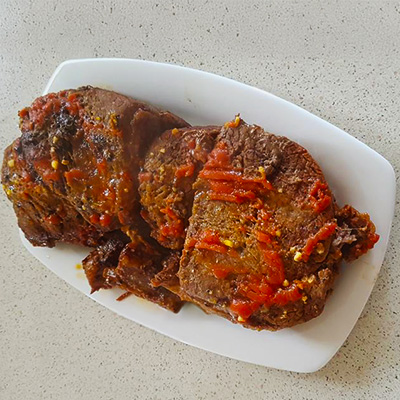 This is my grandma's very easy Beef Roast. We have been using this recipe for more than a decade. It turns out great every single time. This recipe is definitely a winner! Ingredients: 700g - 1000g Beef roast 1 large onion 2 tsp crushed garlic 1 tsp thyme 1 tsp paprika 1 can beef stew soup (of your choice) 1 cup water 1.5 Tbsp tomato paste Salt and pepper to taste Dash of oil Method: 1) Fry beef roast on both sides till lightly...