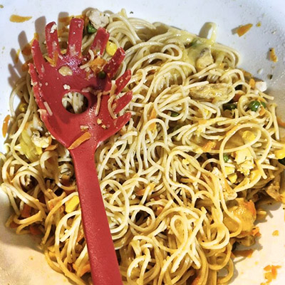 folks, its just spag bol with chicken instead of mince and tomatoes.