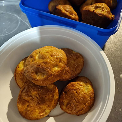 Quick and easy baking 3/4 cups milk 2 Eggs, 1/3 cup Honey 2 tsp Baking powder 1/2 tsp Salt 1tsp Vanilla 2 cups flour 1/4 cup Coconut oil 1/2 cup Greek yogurt Preheat oven to 190°C In a bowl mix all the dry ingredients and I'm another bowl mix all the wet ingredients. Combine together and spoon into a greased muffin tray. Bake for 15-20 minutes